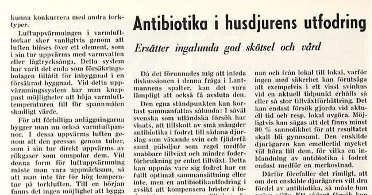 I nästa nummer av tidningen tar husdjursagronomen Allan Frölich, Statens husdjursförsök, vid och går in djupare på hur lantbrukaren bör gå till väga. Det betonas att antibiotika i foder endast ska användas till slaktdjur och inte till livdjur.