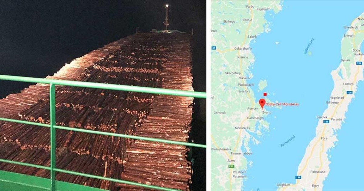 Fartyget är 120 meter långt och 17 meter brett och lämnade Riga i Lettland för att lasta av massaveden på Södra Cell i Mönsterås.