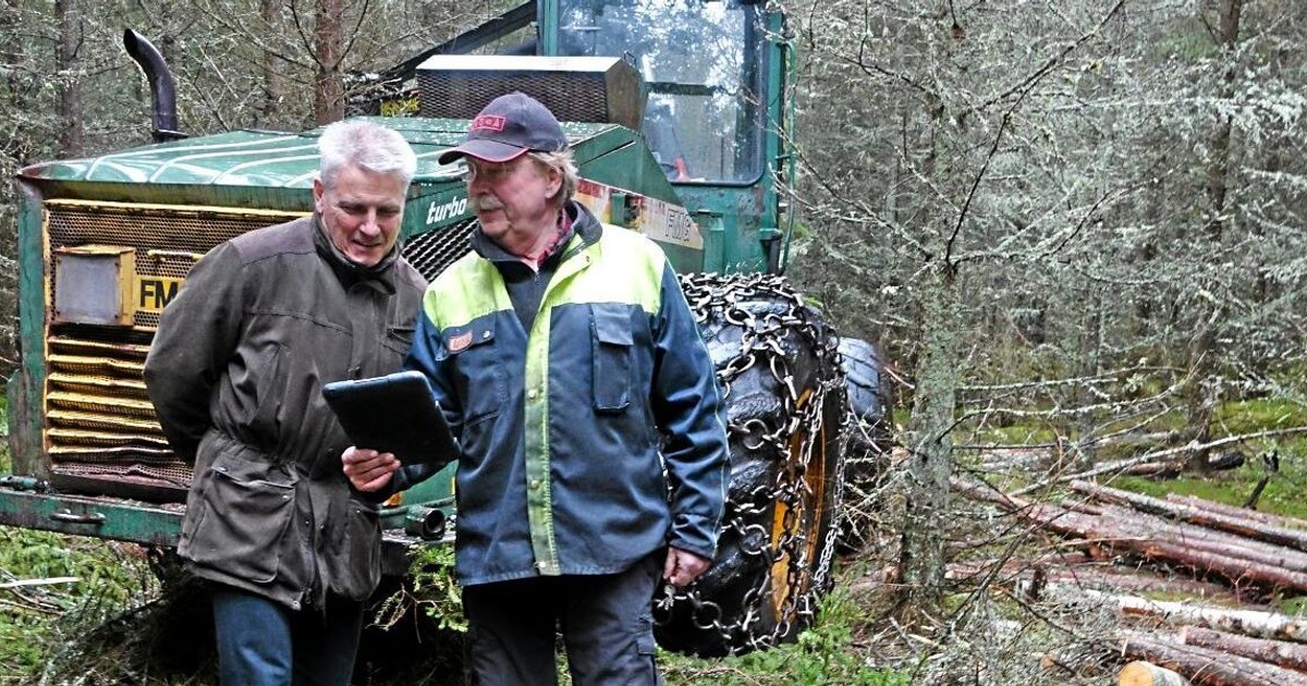 Lars Lyberg gör sina egna traktdirektiv i en ny digital skogsapp. Med telefonen i hand kan han traska omkring i skogen och lägga in alla viktiga uppgifter inför en avverkning.
