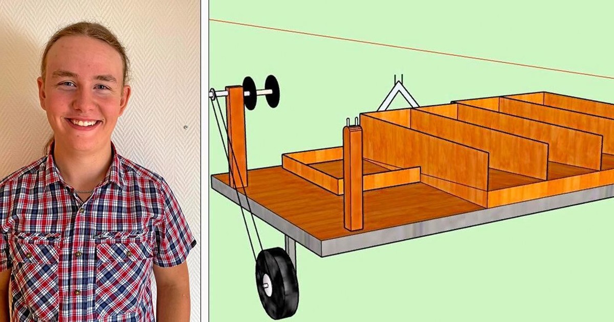 Ett problem har fått en lösning. Lucas Pivén, 16 år, har tagit fram ritningen på en ”stängselupprullare” som ska spara tid och arbete när fårstängslet på gården ska upp på våren och rivas på hösten.