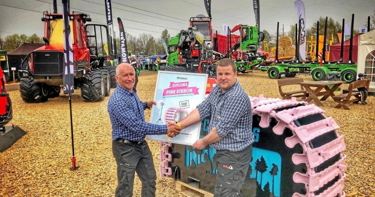 Olofsfors rosa band från 2018 har sålts vidare på Maamess, vilket är den största skogs- och jordbruksmässan i Estland. Det estländska företaget MFO OÜ, som kammade hem det rosa skogsmaskinbandet på en auktion i november i fjol, kommer att donera pengarna till cancerforskning i hemlandet.