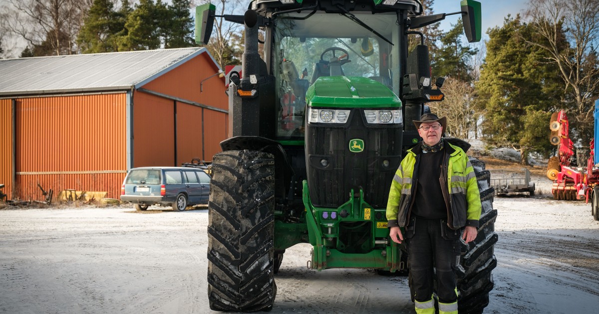 – Nu går väl det mesta mot att bli mer integrerat i traktorn, men jag vet inte om det är bättre i det här hänseendet. Jag har hört om folk som fått sina traktorer söndersågade för att tjuvar ska komma åt GPS-utrustningen, säger Karl-Johan Eriksson, anställd på gården.