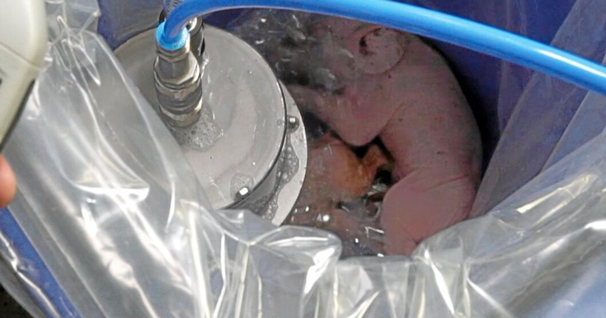 Harm Kiezebrink, som bor i skånska Torekov, har uppfunnit en metod där djur avlivas med hjälp av kvävgas i ett expanderande skum. Med skum med kväve upp över huvudet försvinner allt syre och en fågel eller gris blir snabbt medvetslös utan stress och smärta. Och efter en kort stund har djuret dött.
