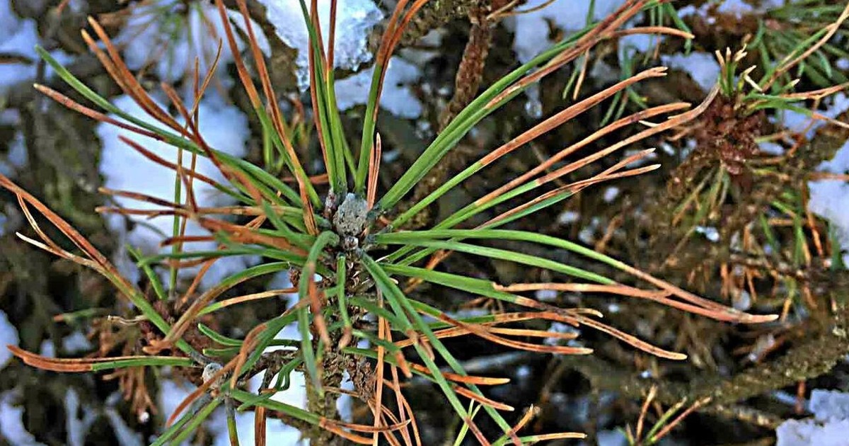 En analys visar att bergtallen i Alnarp har fått svampangrepp av parasiten Lecanosticta acicola och till att börja med blir spetsen på barren brungula. Efter hand gulnar en allt större del av barrmassan.