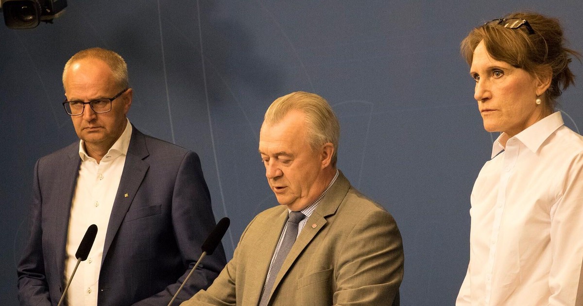 Landsbygdsminister Sven-Erik Bucht (S), Jordbruksverkets generaldirektör Christina Nordin och LRF:s ordförande Palle Borgström höll på måndagen en presskonferens om torkan.