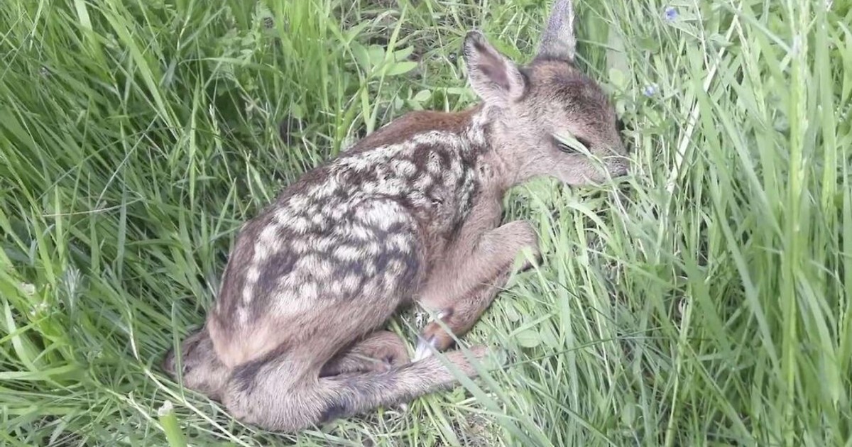 Se rådjurskiden som räddades från slåttermaskinen – ”De kvadratmetrarna med gräs kan jag avvara”.