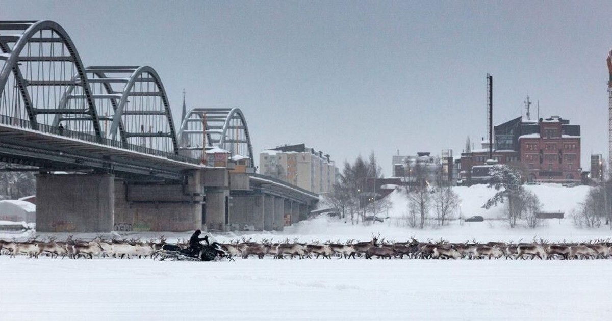 Renhjord kör rakt genom Luleå