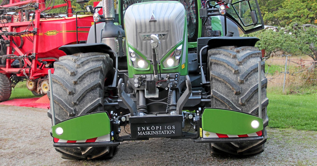 Kenneth Karlsson på Enköpings Maskinstation har mycket vägkörning. Därför monterade han ett påkörningsskydd på sin nya traktor. Skyddet, Agri Bumper, ska göra att traktorn vid knuffar undan en krockande bil i stället för att köra upp på den. Då löser också krockkuddarna ut som tänkt.