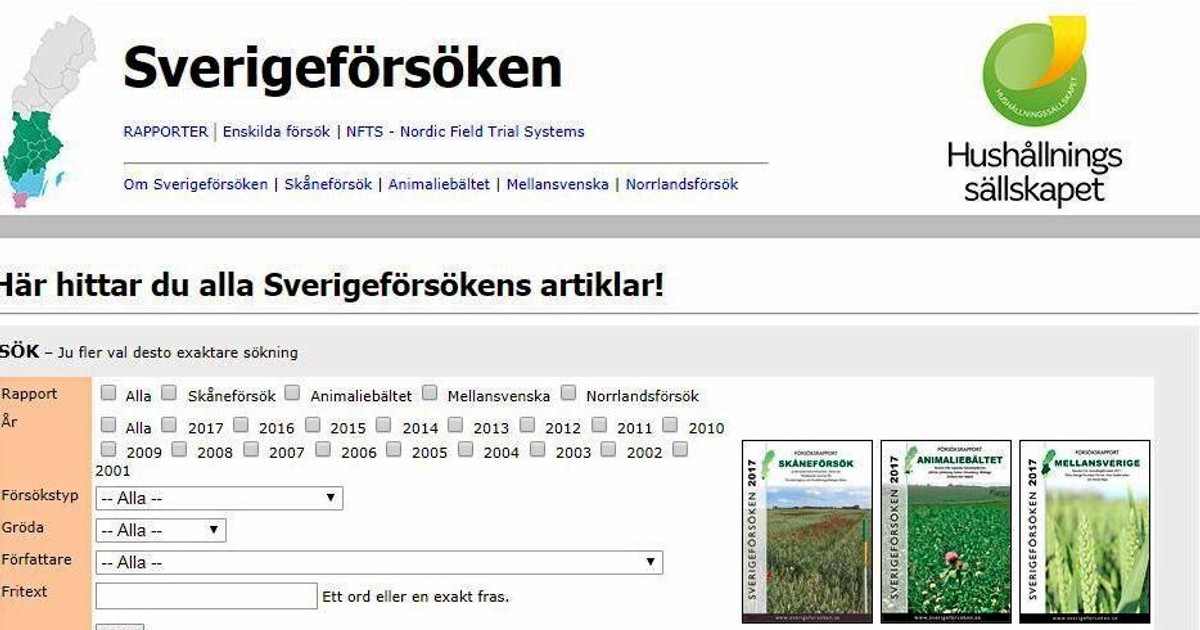 Sedan 7 december har Hushållningssällskapen tagit över ansvaret för portalen Sverigeförsöken.se. Den innehåller resultat från regionala fältförsök över hela landet