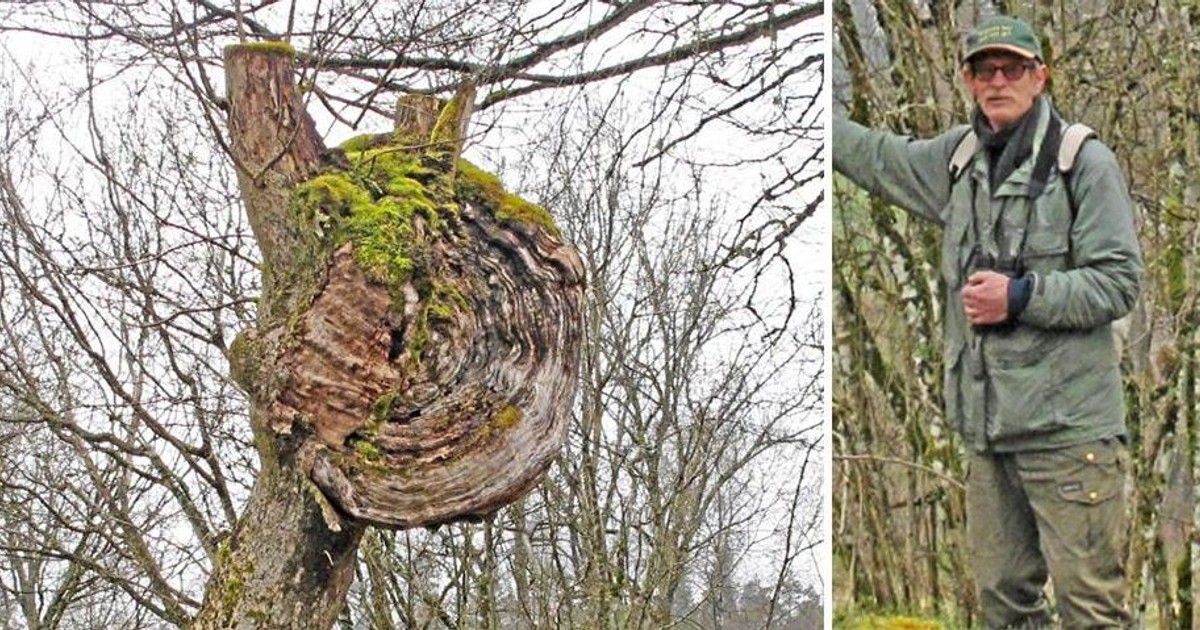 Har vi Sveriges största vril? Det undrar Roland Lyhagen i Göshult, Hillareds socken i Sjuhärarsbygden. Det är han själv som står under det missbildade trädet och den klotformade felväxten mäter enligt honom själv omkring 130 cm i diameter.
