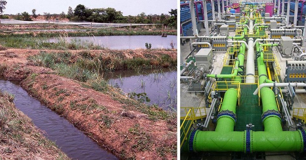 Bevattningsdammar. Vattnet slussas utifrån de behov som finns och påyllningen sker genom regn. Avdunstning, marktillgång och biologisk mångfald är några faktorer att beakta.