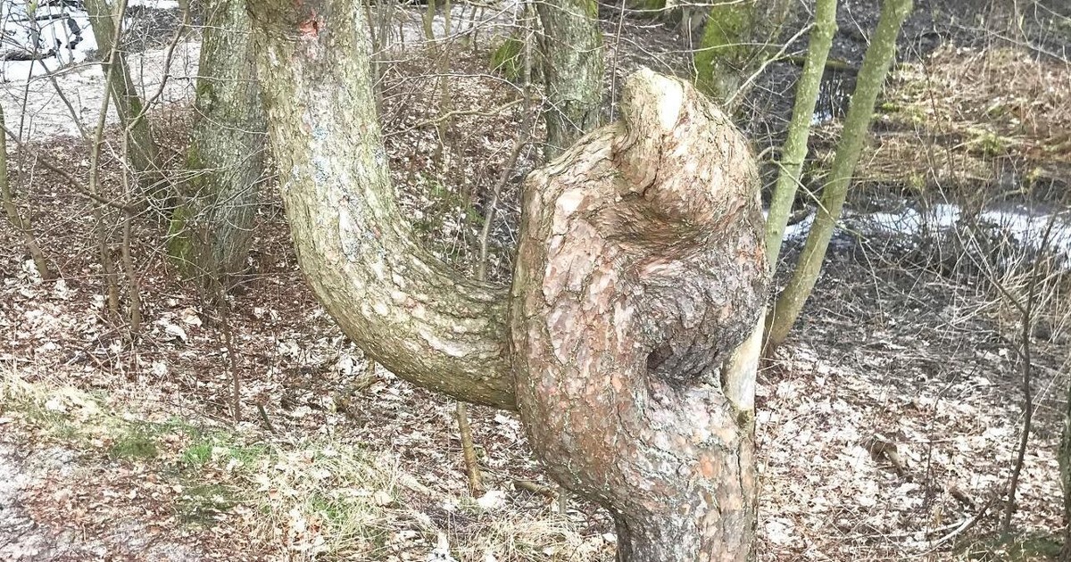 När Kristoffer var ute med en Skogsmullegrupp och gick längs stranden utanför Ystad såg de denna tall. "Barnen sade: - Kolla, den har slagit knut på sig själv.", skriver Kristoffer.