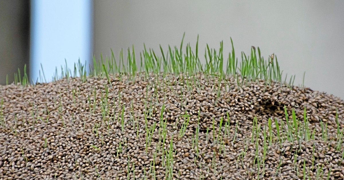 Högst upp på spannmålshögarna har det börjat att gro. FOTO: GÖRAN BERGLUND