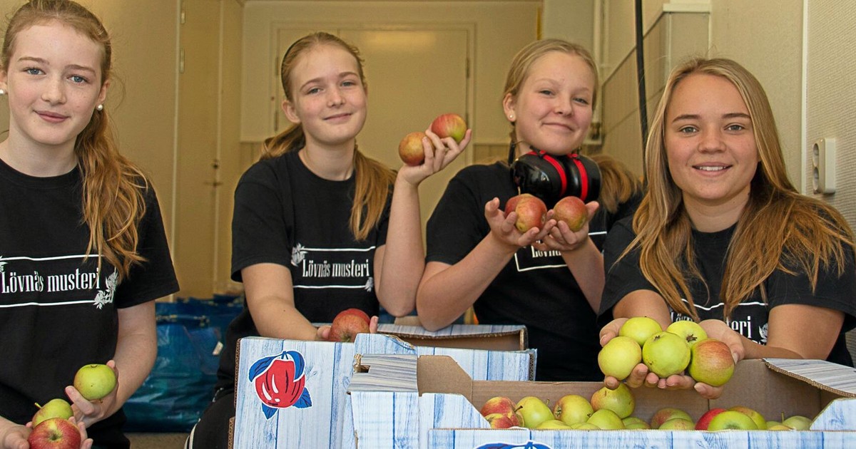 Årets äppelskörd blev stor och för de unga entreprenörerna Julia Sjöberg 15, Saga Mäkimattila 12, Klara Kristiansson 15 och Elin Sjöberg 13 i företaget Lövnäs musteri på Hammarö har säsongen hittills varit mer än bra.