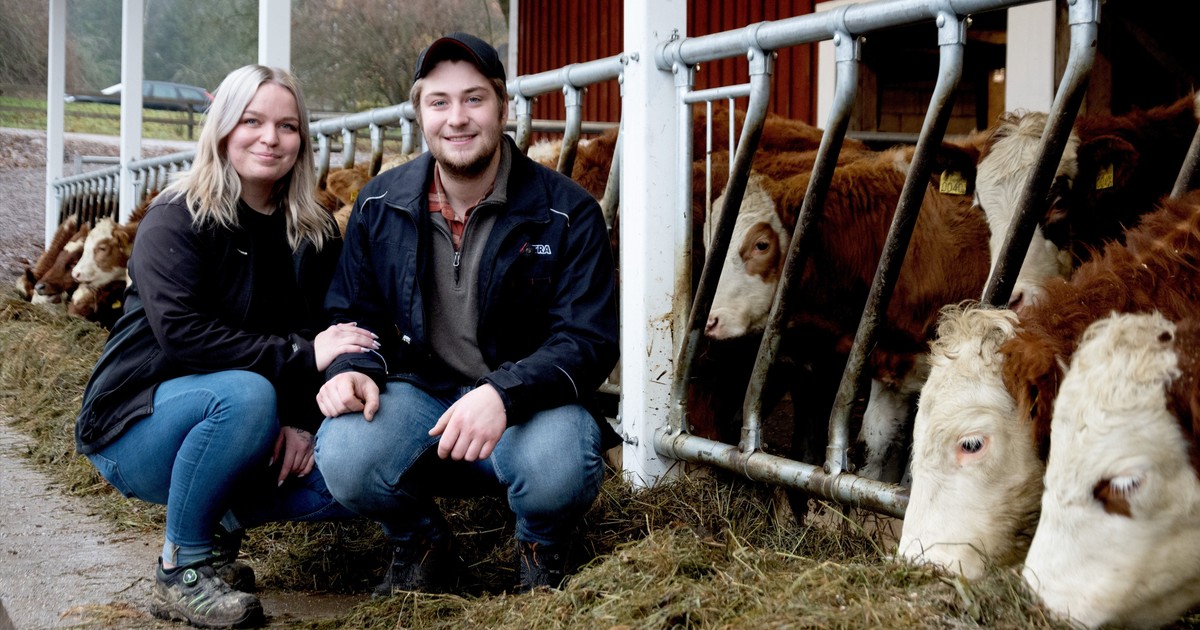 – Vi ser inga utmaningar, bara möjligheter, säger 24-årige Elias Gustavsson som tillsammans med sambon Nora Pilåsen ser en framtid i nötköttsproduktion.