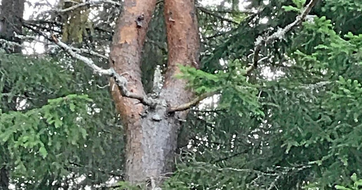 Marita Björnson från Vesene Ljung har skickat in veckans skogsbild: "Denna tall såg vi när vi var i Säfsen och plockade lingon. Med lite fantasi ser du ut som trädet kniper, kanske kissnödig!"